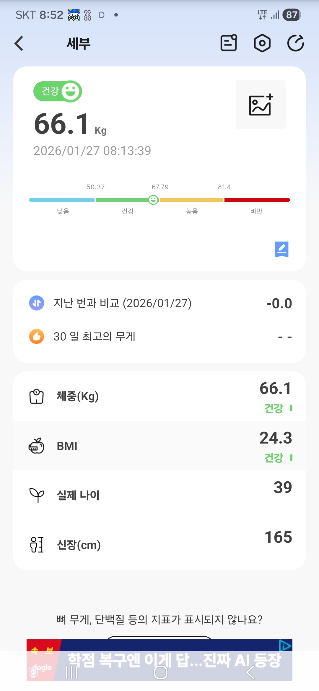 오늘 아침 기준 66.1kg 이네요 .
